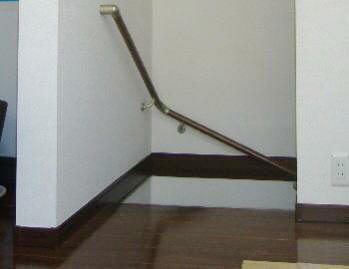 アズウッドは、たたんだ時にレールより5cmぐらい後ろに出るだけですので、階段口のような奥行きが少ない場所でも取り付けが可能です。