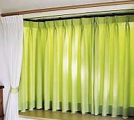 普通レースとドレープが逆ですよね。このようにすると出窓を利用しやすくなるのです。とても使い勝手が良いですよ。